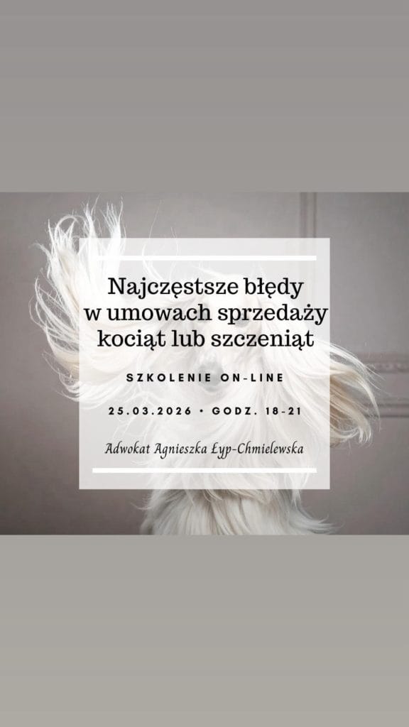Szkolenie online Odpowiedzialność hodowcy za wady sprzedanego psa już 16 października! Zapisy otwarte 🙂 Kochani, już 16 października wraz z